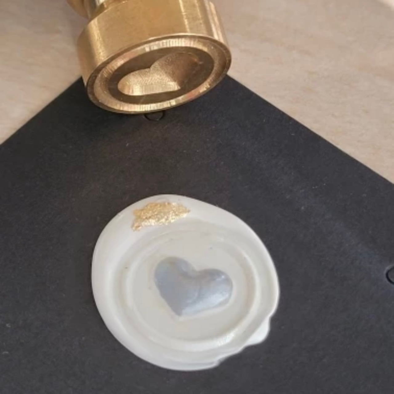 ③ワックスにスタンプをゆっくりと力を入れながら押して10~15秒待ちます。